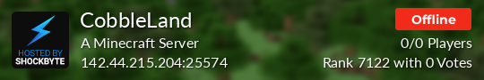 CobbleLand Survival does things a bit differently! We use Jobs and have affordable Donator Ranks with some awesome perks such as Pets and Particles! We are always looking for new staff members and players to join the community! Player Shops are avalible at Spawn and can be setup anywhere including the End or Nether!