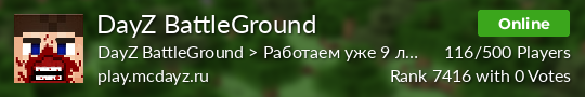 We are a real favorite of DayZ projects. Our project has been in existence for 2 YEARS, and over time we have become popular in all CIS countries.