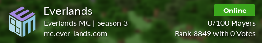 The Everlands promises a Vanilla+ experience but strives to do so much more. We run community events frequently, at least twice a month, with a massive backlog of planned events. We mostly focus on Minecraft events, but we run events in other games as well. We expand the typical Minecraft survival experience in a way that keeps the game fun for long periods of time.