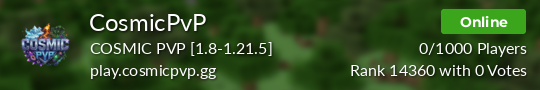 CosmicPvP Network is a space-themed Minecraft server featuring popular game modes such as Factions and Survival!